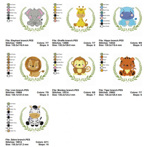 Animals branch Embroidery Design 5x7 Set 7 Designs