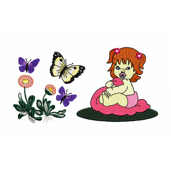 Baby Girl with Butterflies Embroidery Design Perfect for baby clothes, nursery decor and cute embroidery projects. Explore more designs in our baby embroidery designs, kids embroidery designs and Butterflies embroiderydesigns.