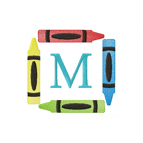 Crayons Frame Letter M Monogram Embroidery Design