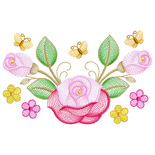 Flores butterfly Embroidery Design