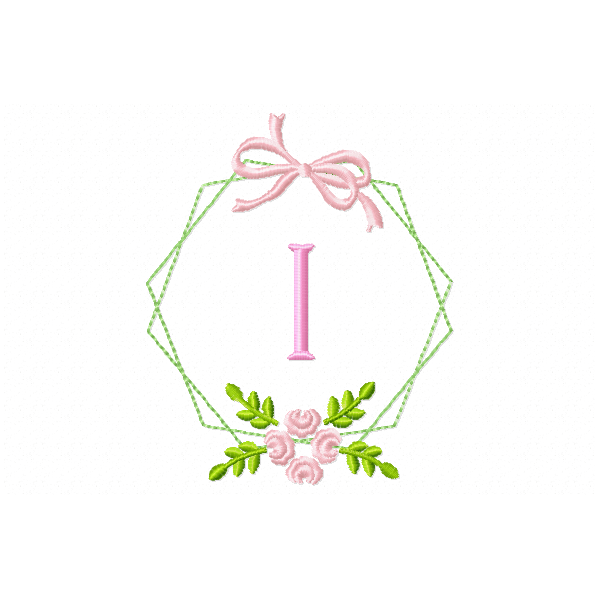 Frame Flower Monogram Letter I Embroidery Design