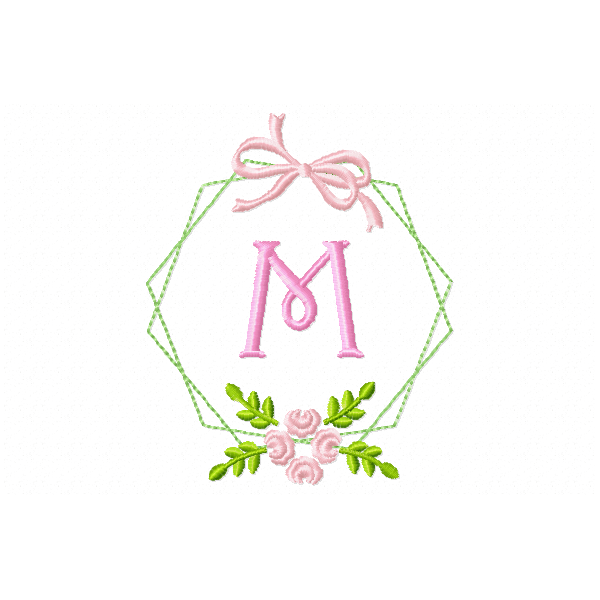 Frame Flower Monogram Letter M Embroidery Design