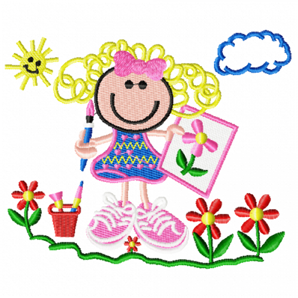 Girl drawing Embroidery Design