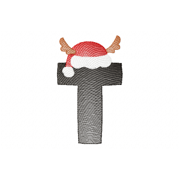 santa letter T monogram embroidery design,