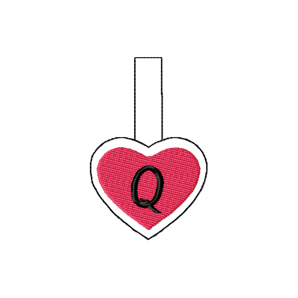 Snap Tab Heart Letter Q ITH in the hoop Embroidery Design