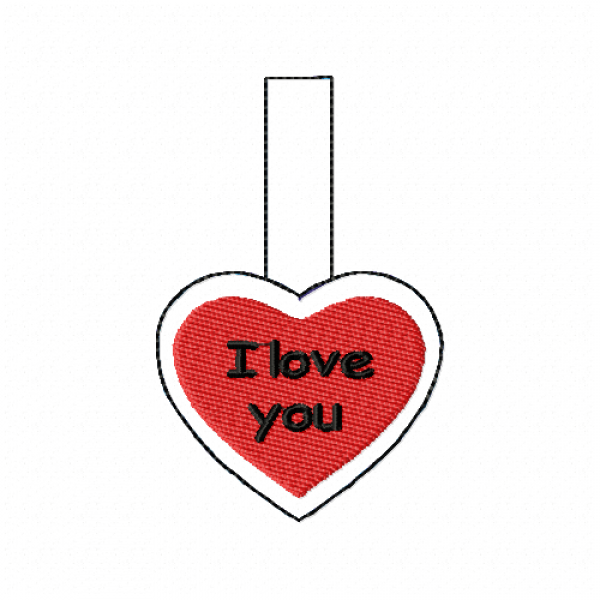 Snap Tab I love you Embroidery Design
