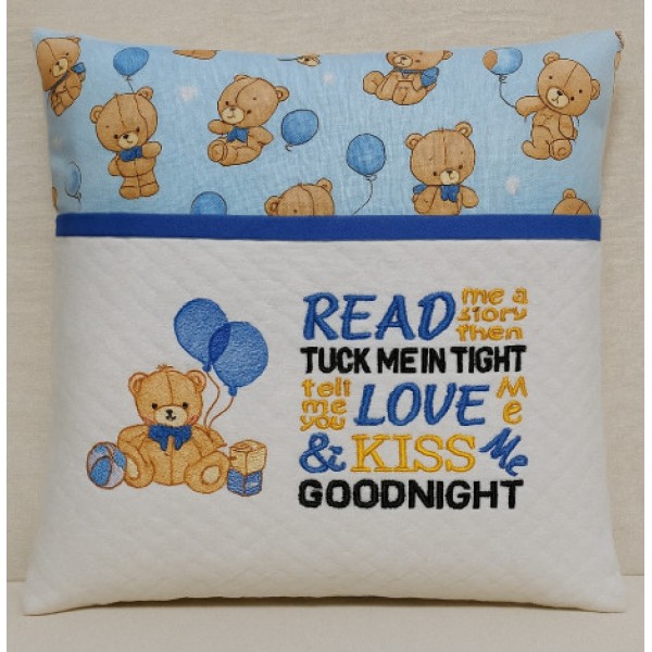 Cute Bear Read me a story reading pillow Embroidery Design