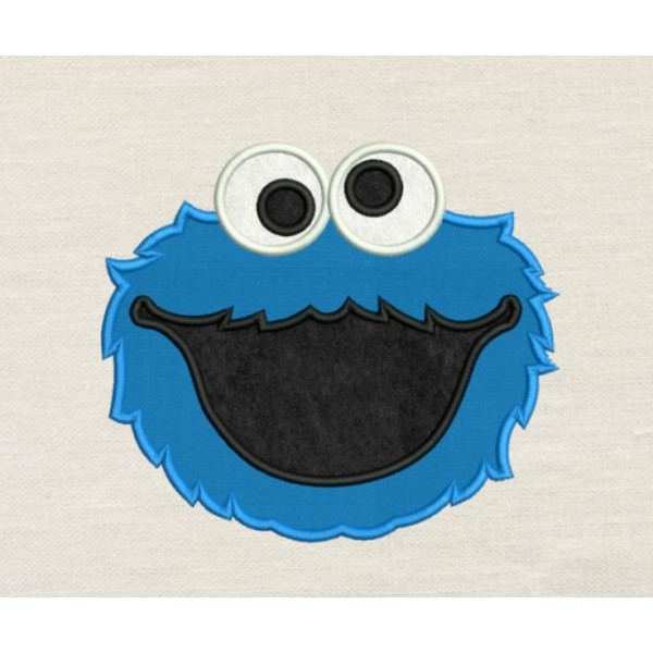 Blue Monster Cookie Applique Embroidery Design 3 Sizes
