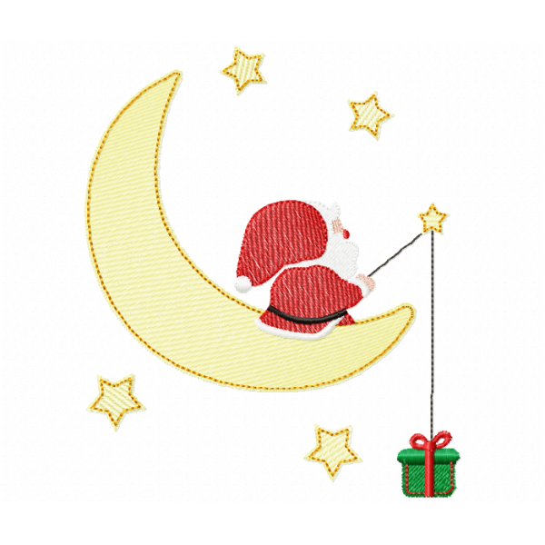 Santa on the Moon Embroidery Design