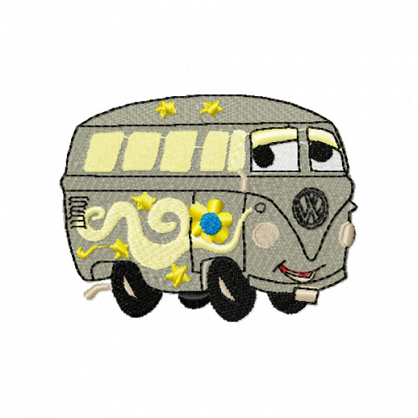 Fun and playful cartoon bus embroidery design perfect for kids and creative embroidery projects. Ideal for clothing, accessories, and personalized designs.