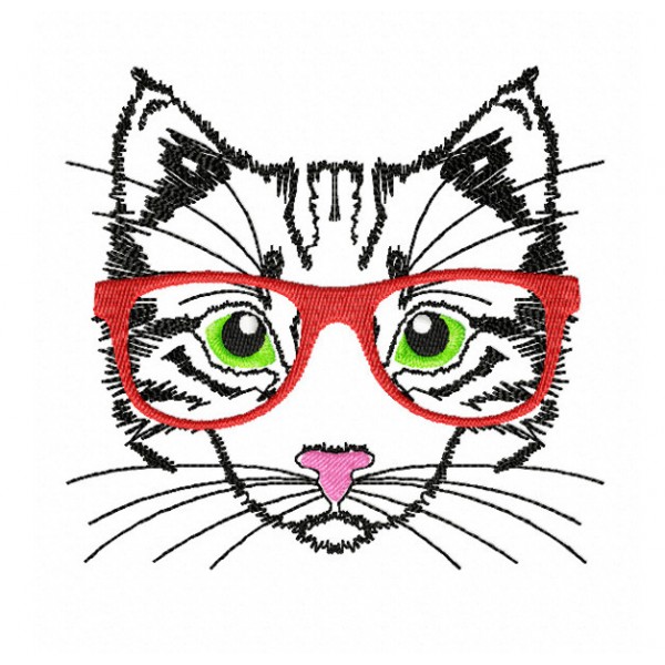 Cat with glasses embroidery design